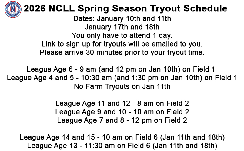 2025 NCLL Spring Registration is now open. $25 Early Bird discount until 12/31/2024.